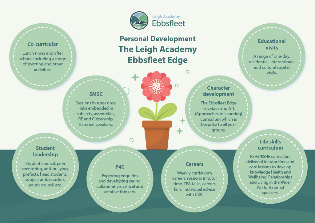 At Leigh Academy Ebbsfleet, PSHE/RSHE is delivered through our Life Skills curriculum, assemblies and by external speakers. Students in all year groups have a weekly Life Skills lesson delivered in tutor time, and a bi-weekly Life Skills Curriculum lesson as part of their timetable. The Life Skills curriculum is bespoke to Leigh Academy Ebbsfleet and differentiated for each year group. Students study Life Skills through six key themes: