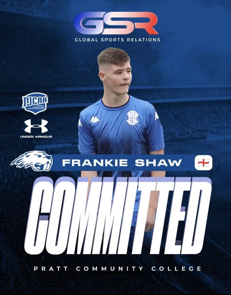 Frankie Shaw will be joining the Pratt men’s soccer team for Fall 2025 following great success of previous GSR clients over the years. Frankie’s exceptional performance at a client game in Dublin served as a catalyst, attracting the attention of numerous coaches from across the United States. Offers poured in from Division 1, Division 2, and Division 3 colleges, presenting a wealth of opportunities. After careful consideration, Frankie chose Pratt Community College, a Division 1 team within the National Junior College Athletic Association (NJCAA).