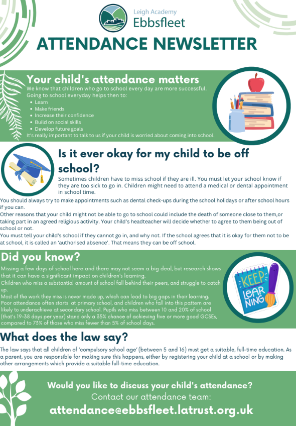 Contact our attendance team: attendance@ebbsfleet.latrust.org.uk