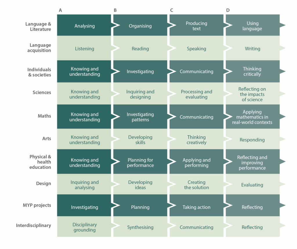 The MYP divides subjects into 8 groups. Each group has equal importance which ensures a broad and balanced curriculum for all students.